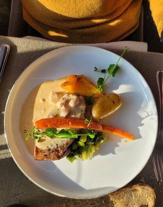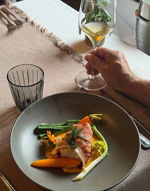 Notre restaurant à Saint-Georges-sur-Loire propose une cuisine française réalisée à partir de produits frais et locaux. Les légumes, herbes et fruits du potager en permaculture du château sont sublimés dans des plats savoureux, avec des options végétariennes et végan. Nous collaborons également avec des producteurs bio de la région pour limiter notre impact écologique et garantir une gastronomie responsable.